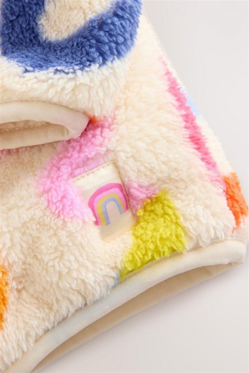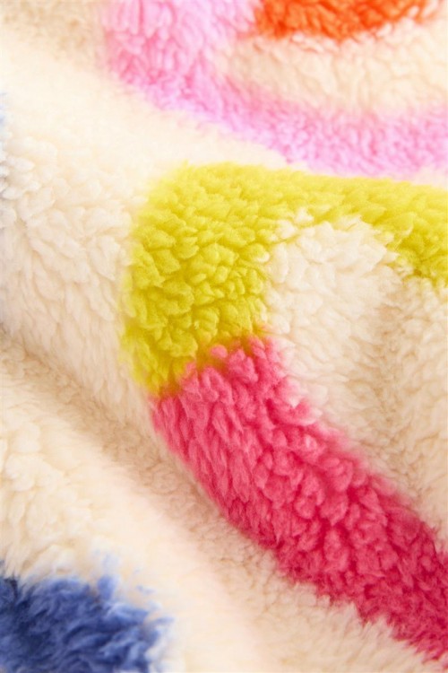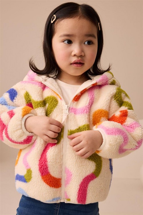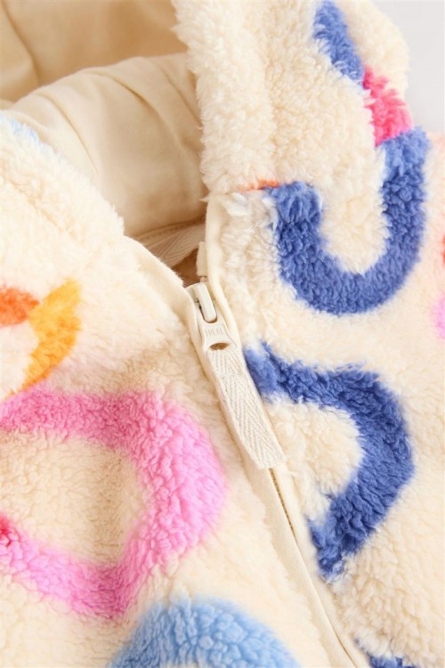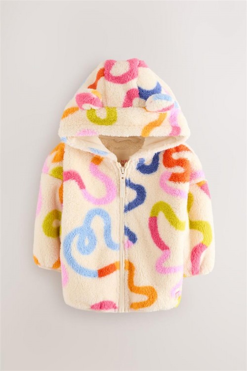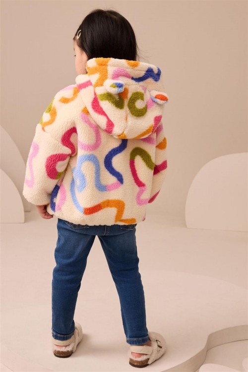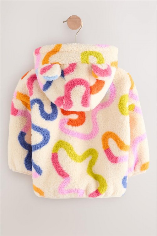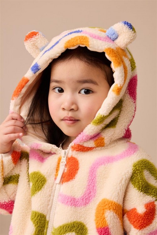 Освежете студените дни с това пухкаво яке с качулка. С весел многоцветен принт, цип отпред и сладки 3D ушички на качулката, то е меко и уютно.