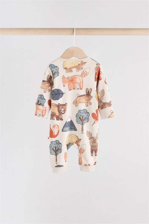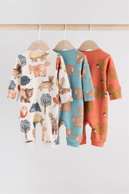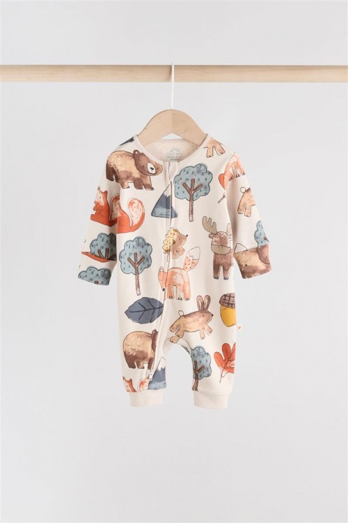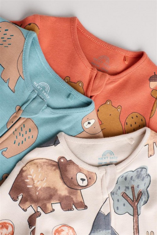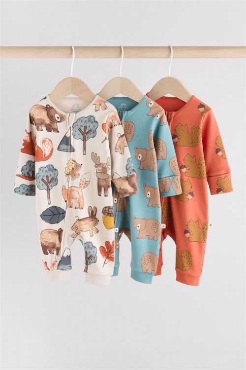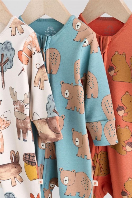 От супер мека материя и налични в удобна опаковка от 3 броя, вашето мъниче ще хареса тези ярки и свежи пижамки с с горски щампи. Закопчаване с цип и вградени ръкавици за надраскване за допълнителен комфорт.