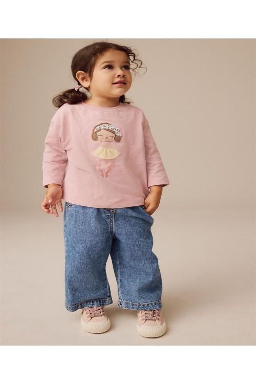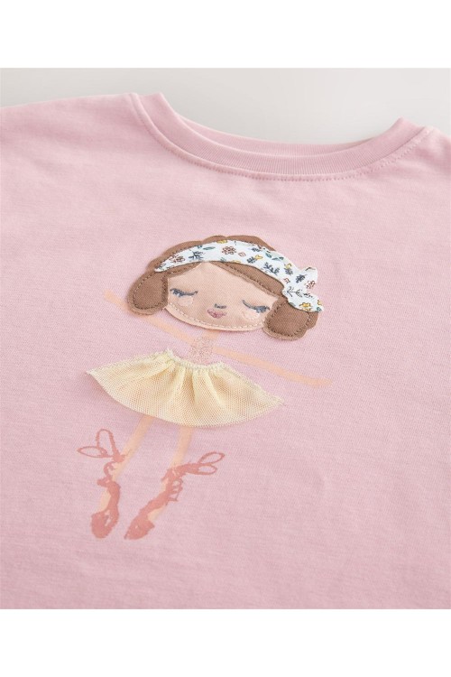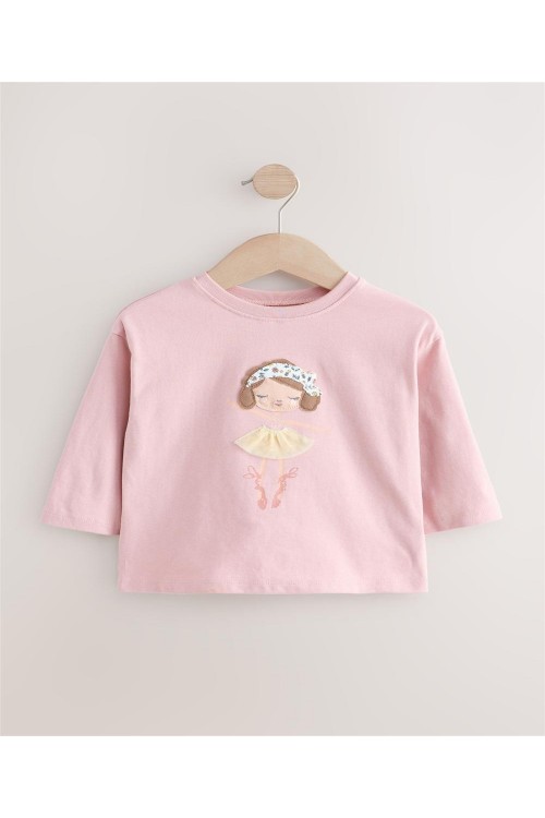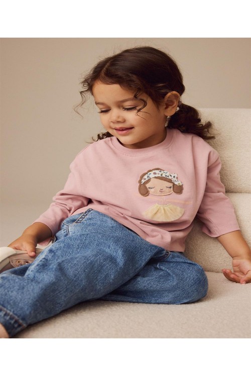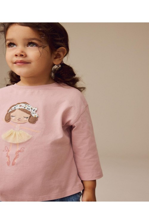 Тази сладка,розова блуза с дълъг ръкав може да се комбинира чудесно с любимите дънки и маратонки на вашето дете. Бродираната балерина отпред с поличка от тюл, ще добави допълнителна елегантност към стила на малките момичета.