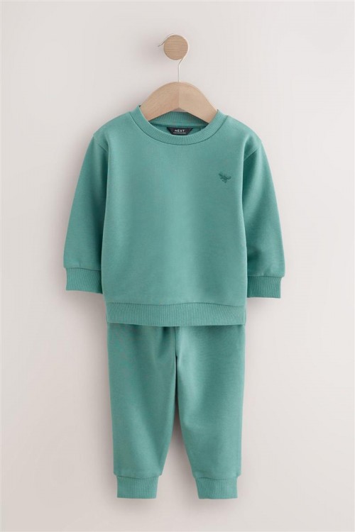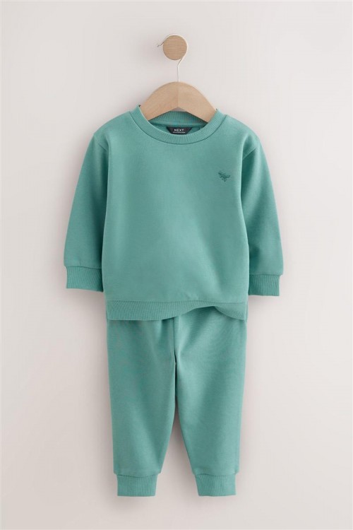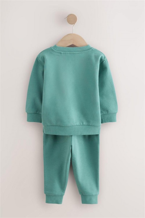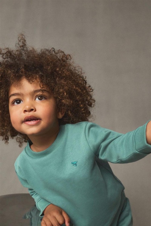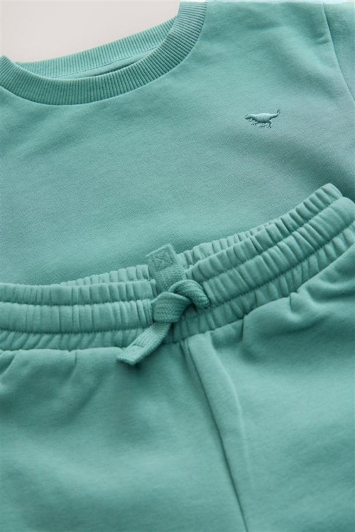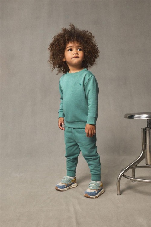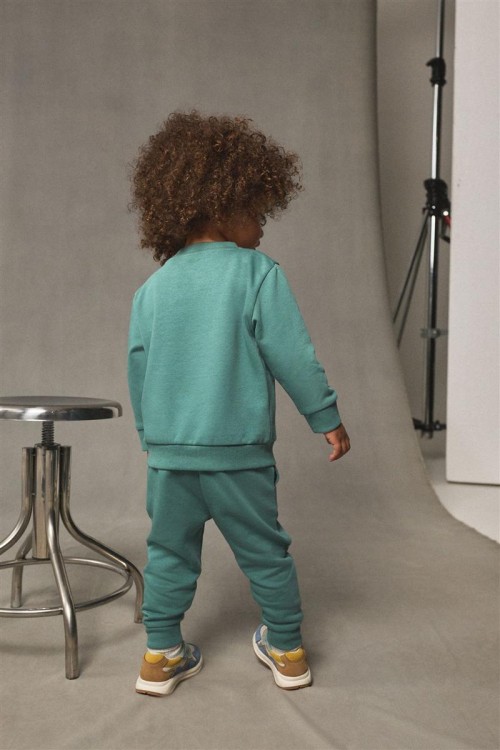 Заложете на семпъл и удобен стил с този комплект от две части в тюркоазен цвят. Включва класически суитшърт с обло деколте и съчетан панталон тип джогър – идеален за ежедневни игри и небрежна визия.