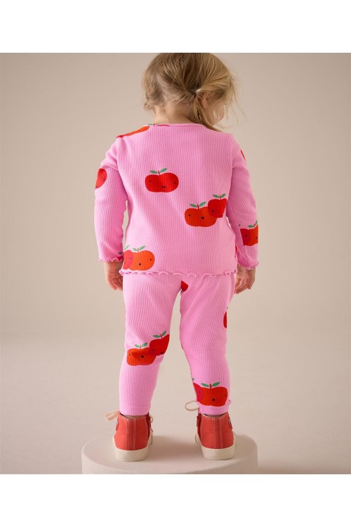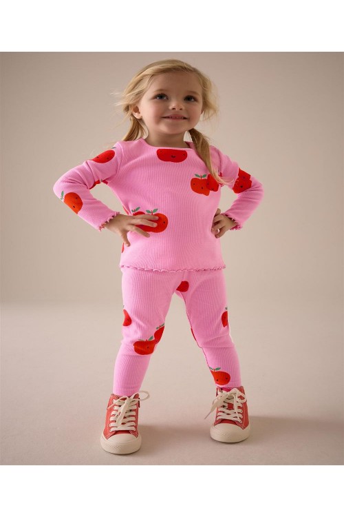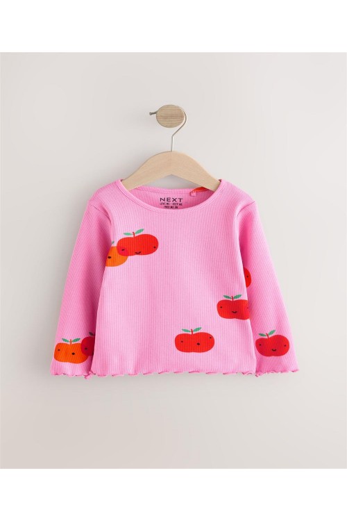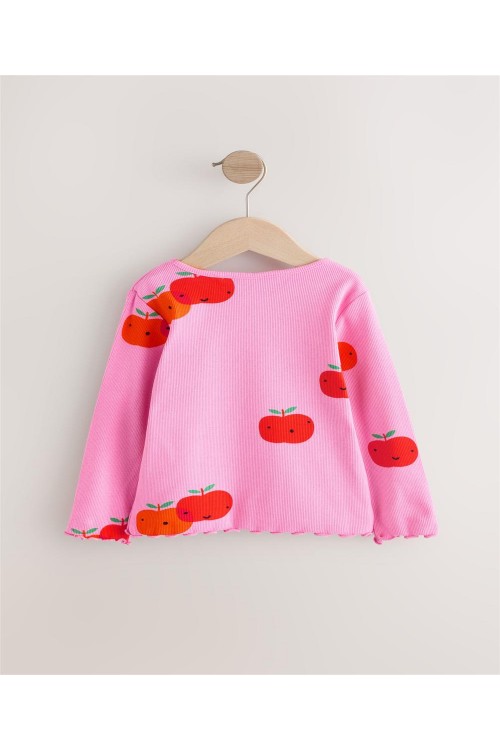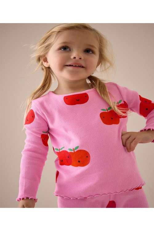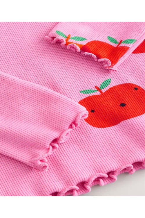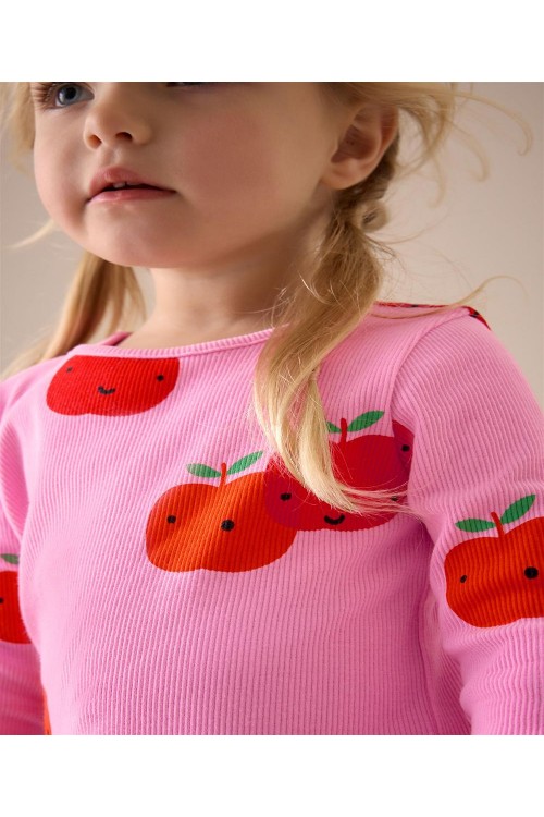 Добавете малко цвят към ежедневния гардероб на вашето дете с тази блуза с дълъг ръкав, украсена с очарователна щампа на ябълки в розов цвят. Изработена е от мека памучна материя с добавена еластичност. С нея детето ви ще се чувства комфортно през целия ден. Може да се пере в пералня.