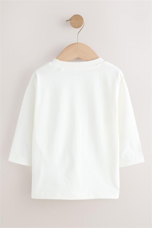 Заложете на свеж стил с тази бяла блуза с дълъг ръкав и черна щампа на гърдите. Изработена от мек памук, тя е семпъл, но стилен избор за ежедневието.