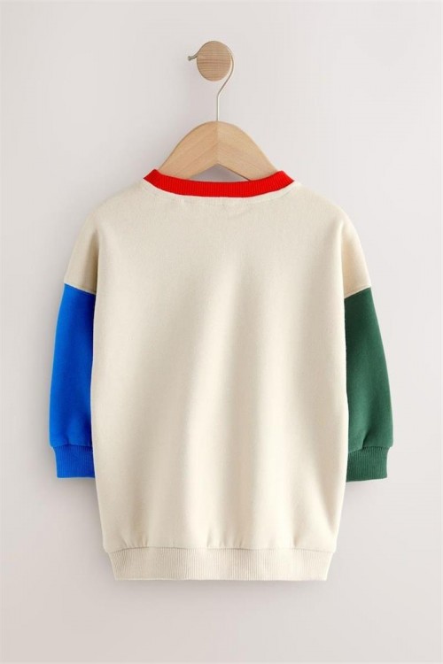 Добавете цвят в гардероба с този кремав суитшърт с контрастни ръкави и апликация на червен трактор с игриво тигърче. Изработен от мек памук, той е идеален за носене в по-хладните дни.