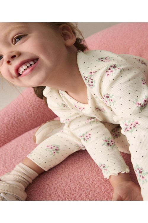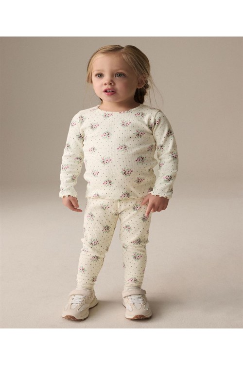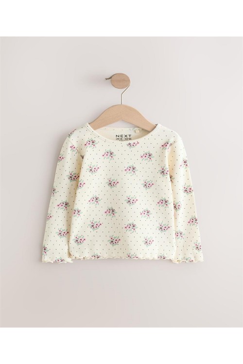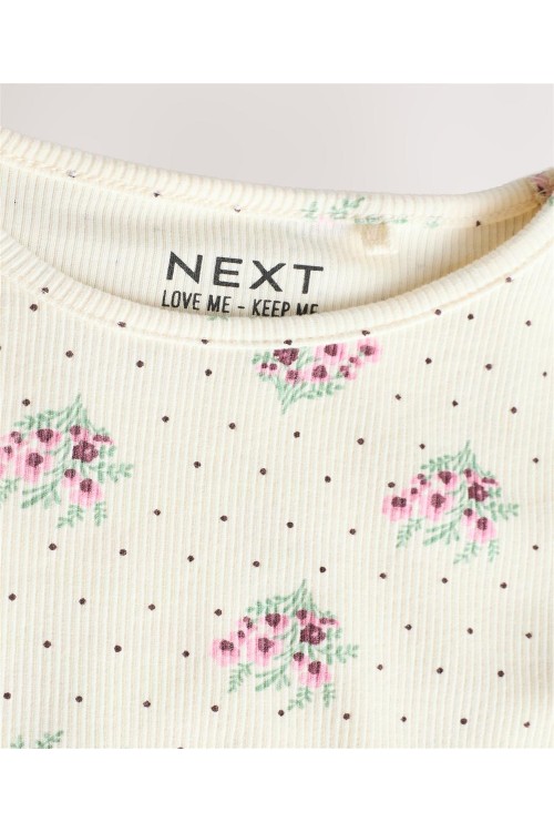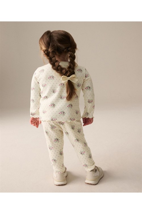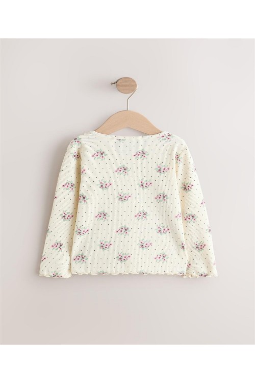 "Добавете тази блуза с дълъг ръкав към ежедневното облекло на вашето дете.Тя може да се съчетае както с клин, така и с пола. Блузата е в кремав нюанс с цялостен принт на малки цветя и е с богата на памук основа с допълнителна еластичност. С къдрички на маншетите на ръкавите и подгъва. Може да се пере в пералня.