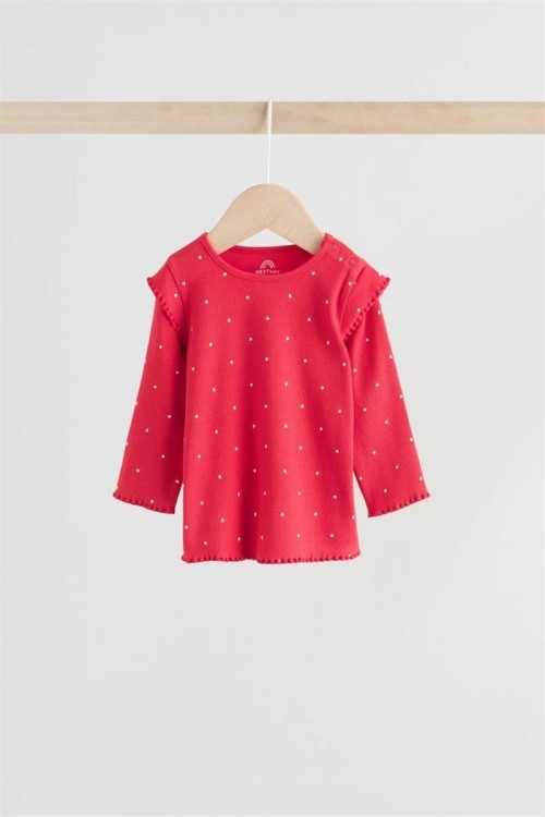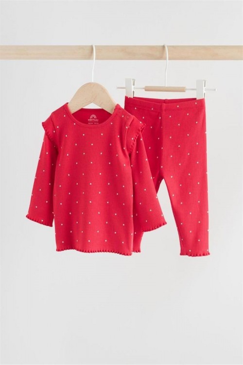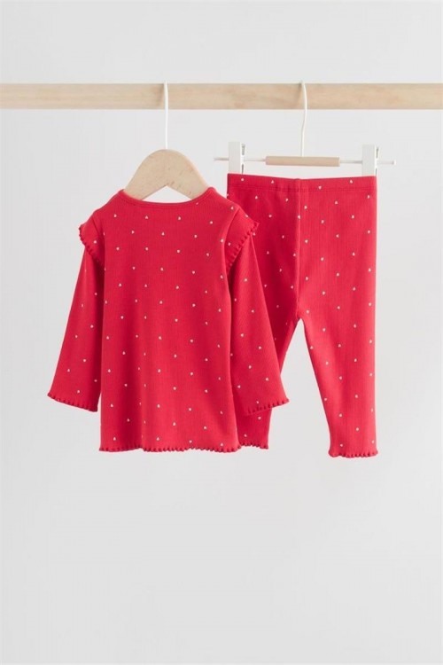 Уютен бебешки комплект в червен цвят с нежни бели точки, създаден за максимален комфорт и сладък вид. Изработен от мек памук.