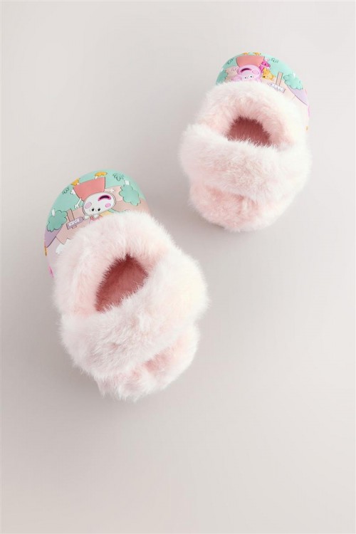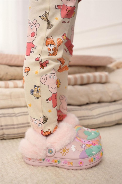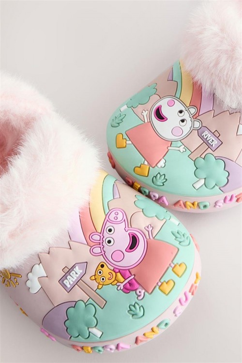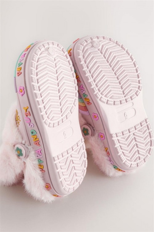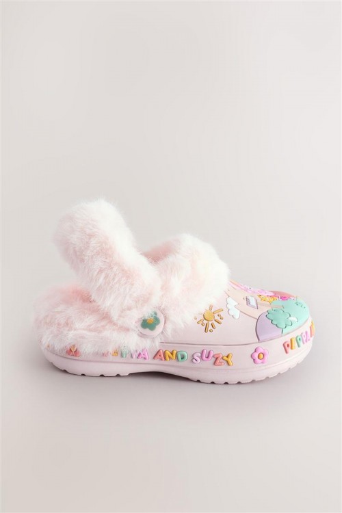 Удобни джапанки в светлорозово с пухена подплата и весели анимационни принтове. Осигуряват комфорт и топлина, идеални за у дома или за игри навън.