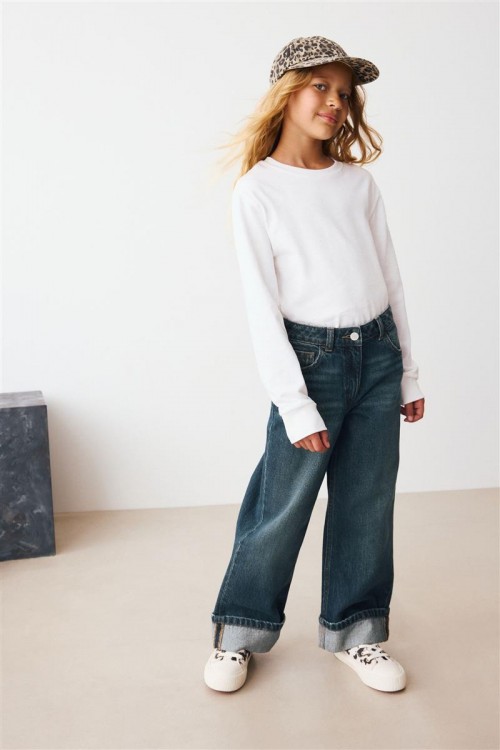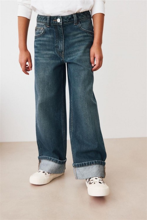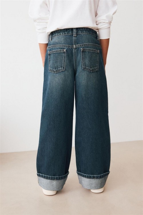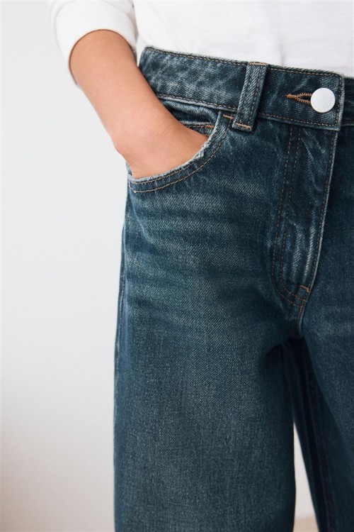 Добавете модерен щрих към тяхната дънкова колекция с тези широки тъмносини дънки. Kласическото закопчаване с копчета и цип отпред осигуряват стилен външен вид, а функционалните джобове предлагат практичност. Идеален избор за модерен, ежедневен вид.