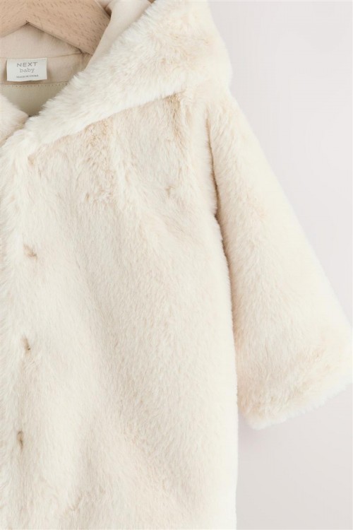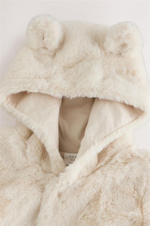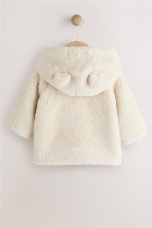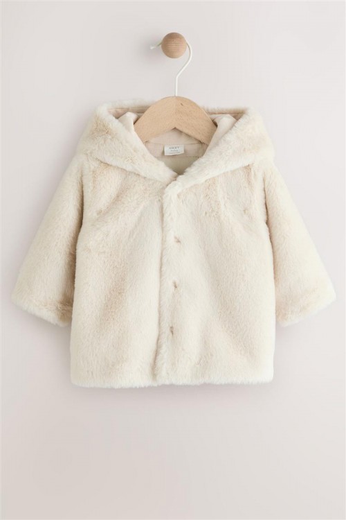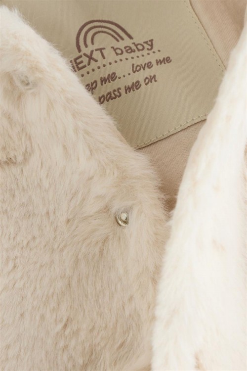 Вашето мъниче ще се чувства уютно в това очарователно яке с качулка от изкуствена кожа. Супер меката материя осигурява комфортно усещане, а закопчаването с копчета отпред осигурява лесно обличане.