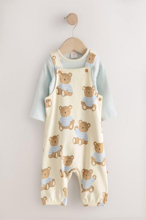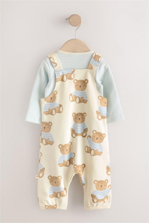 Този комплект от 2 части е удобен и сладък, включващ меко боди от памучна смес с дълги ръкави и закопчаване с копчета за лесно преобличане, както и гащеризон от чист памук с презрамки, предлаган в различни цветове и щампи.