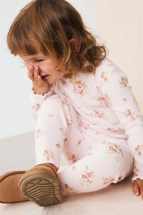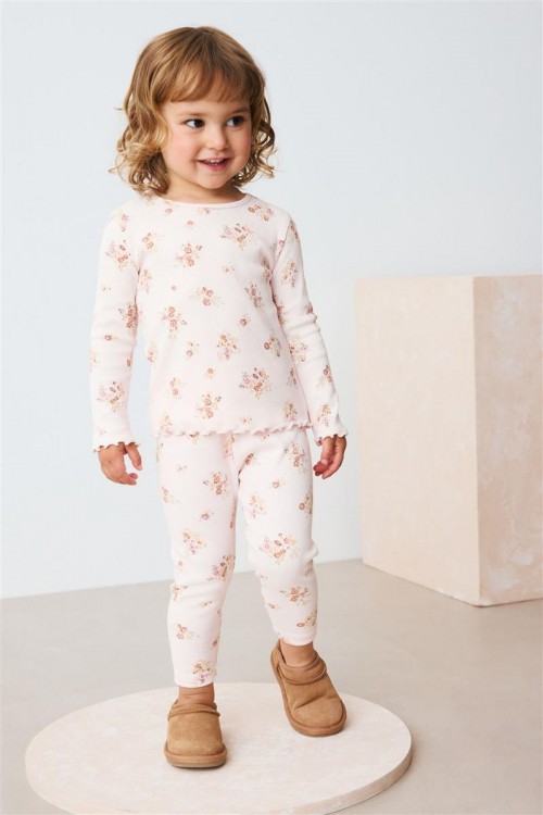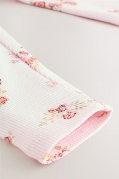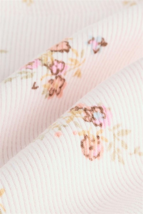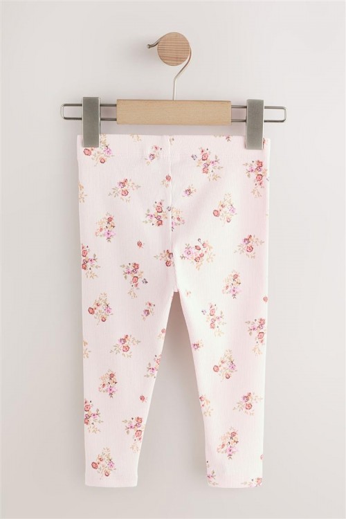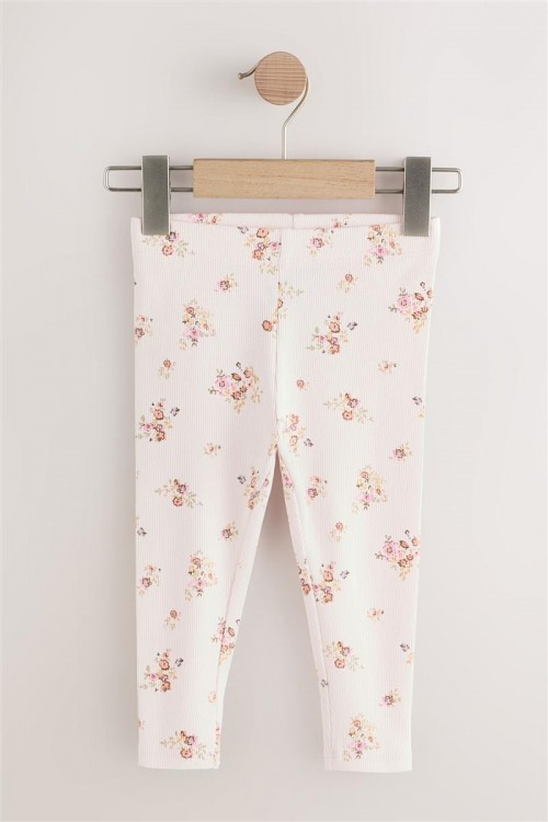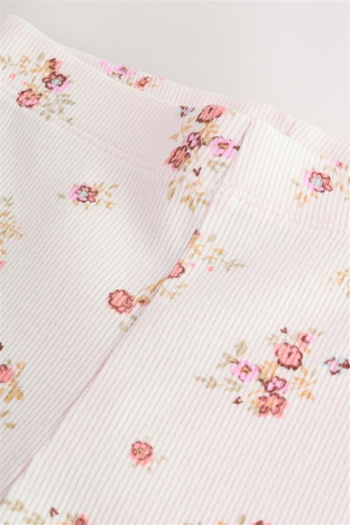 Меки памучни клинчета в бяло с нежен розов и бежов флорален принт. Удобни и лесни за съчетаване с туники, рокли или пуловери за ежедневието.