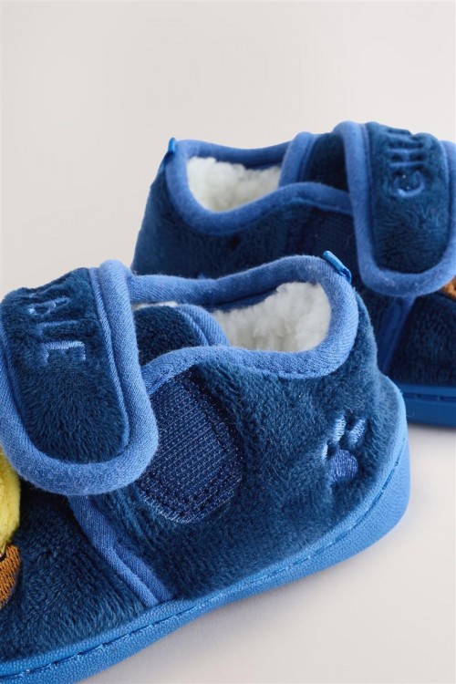 Уютни сини пантофи Paw Patrol с героите Чейс и Рабъл. Изработени от мек плюш с удобни велкро лепенки за сигурно прилягане. Идеални за топли и удобни детски крачета у дома