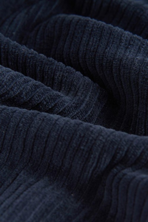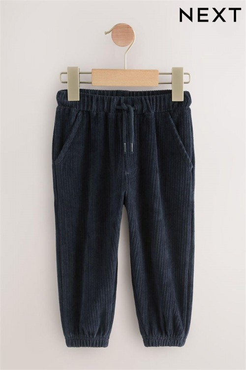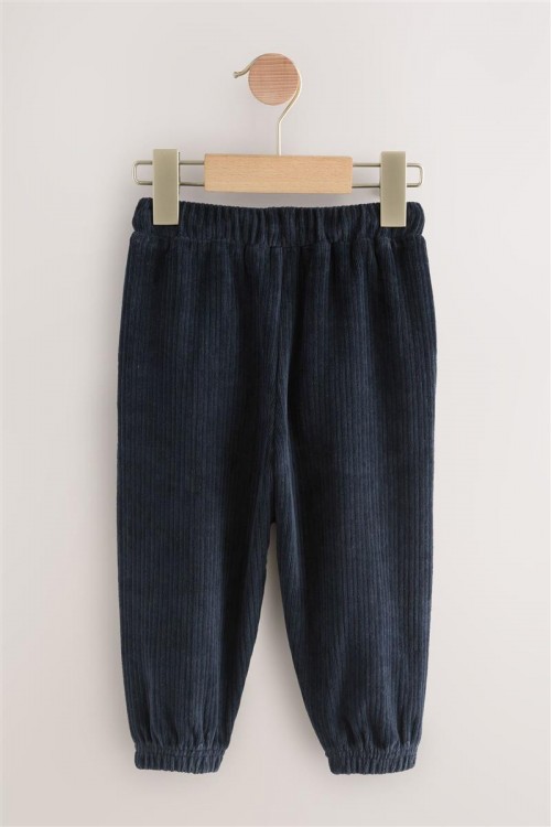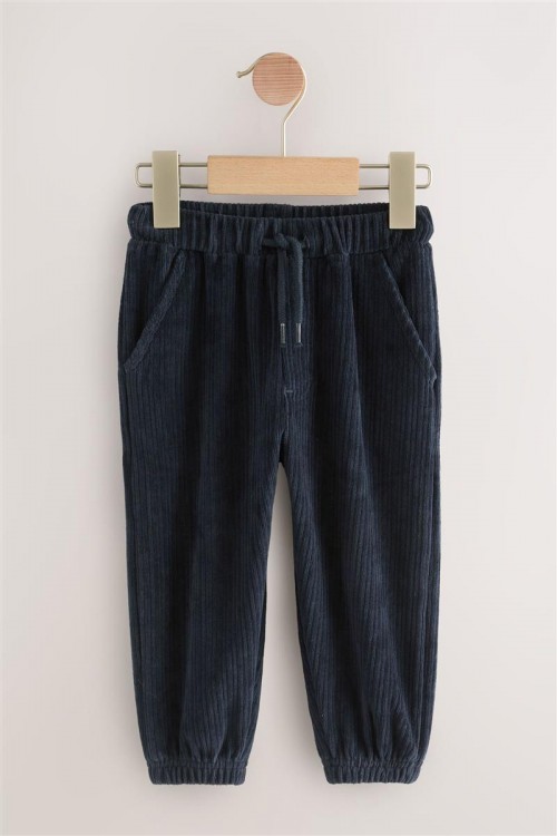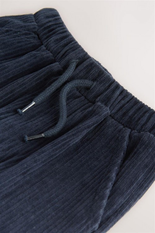 Удобни панталони от кадифе в тъмносин цвят. С еластична талия и връзки за комфортно прилягане. Със странични джобове и ластични маншети, тези панталони са едновременно практични и стилни – идеални за ежедневието и игрите
