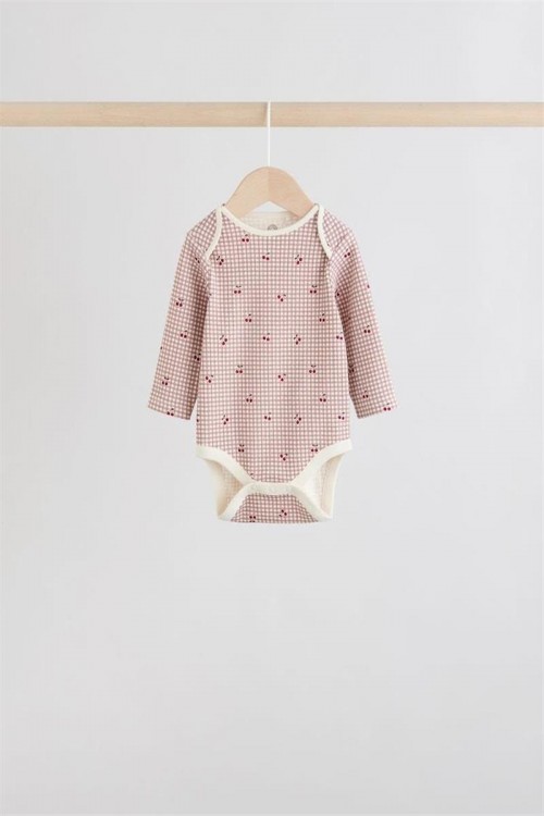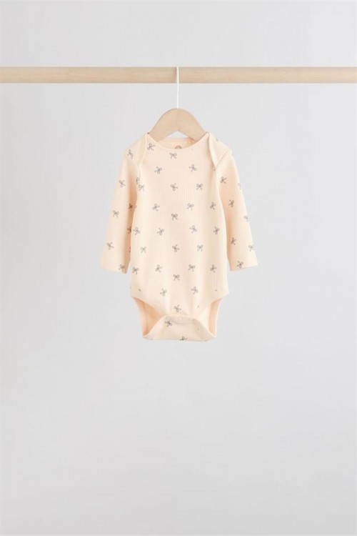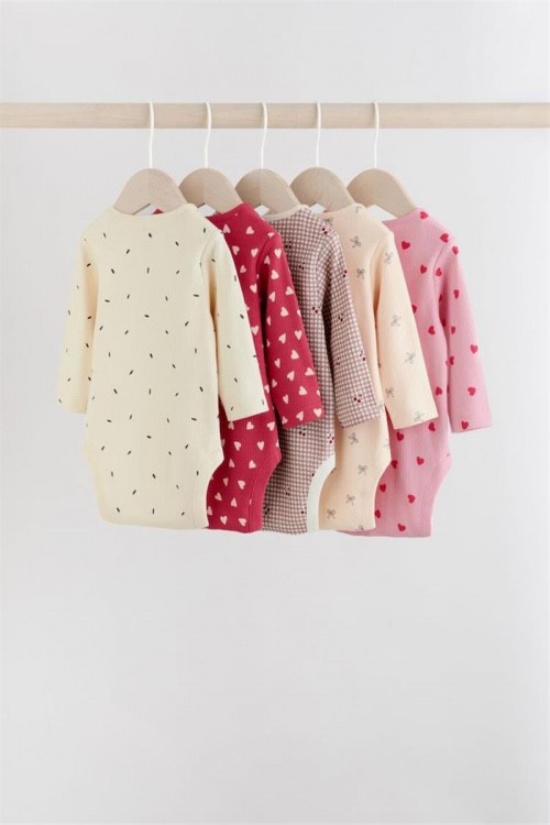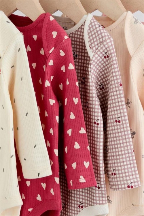Комплект от пет бебешки бодита с къс ръкав в нежни пастелни тонове – мента, бежово и кремаво – с фини точки и щампи. Изработени от дишащ памук, осигуряват удобство и комфорт за ежедневието. Идеални както за наслояване, така и за самостоятелно носене.