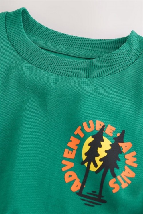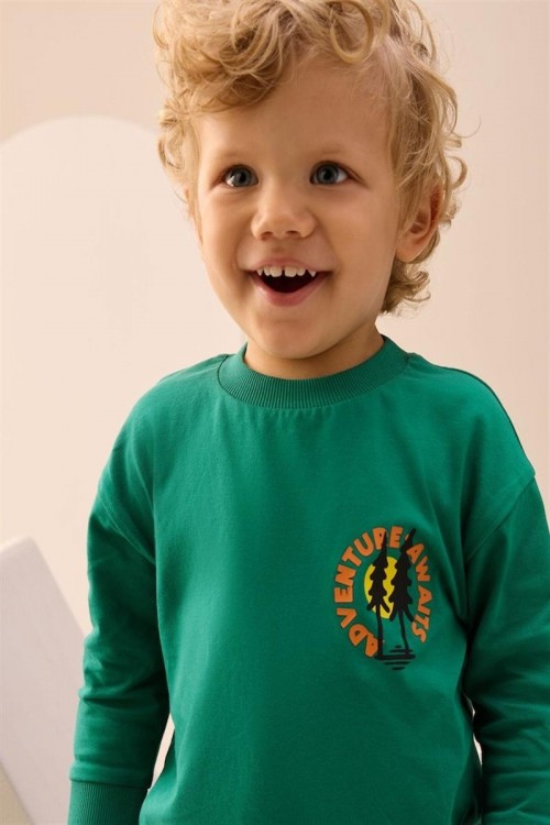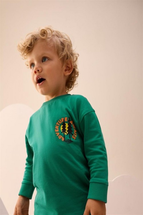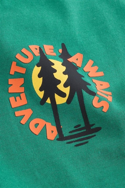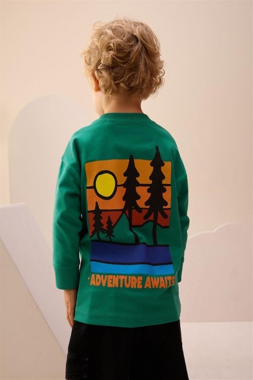 Тази зелена блуза с дълъг ръкав е забавен и удобен избор за следващия ден навън. С ярък принт на сцената на гърба и малка емблема отпред,