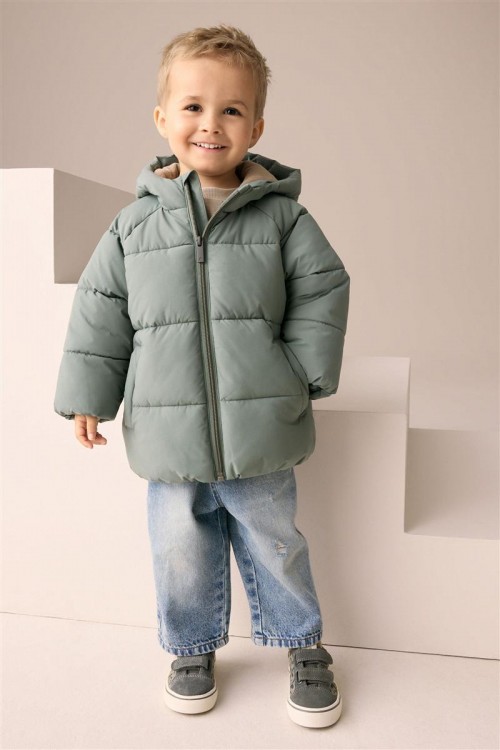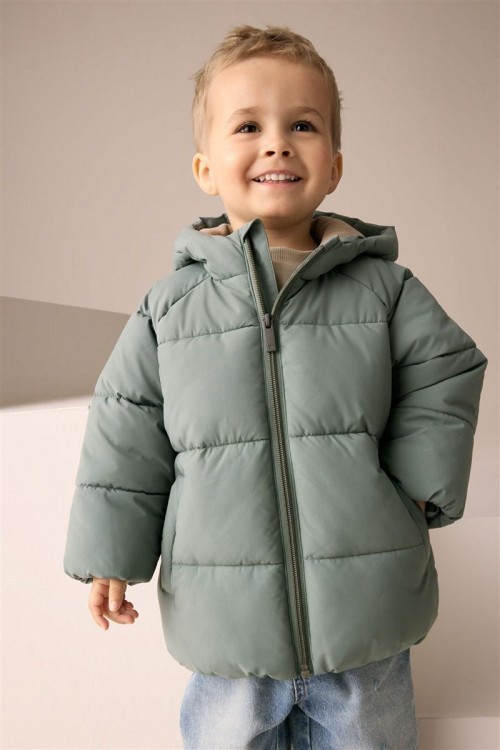Дръжте ги топли и сухи по време на техните приключения на открито с това зелено ватирано яке. Водоустойчивата материя и ватираният дизайн осигуряват допълнителна топлина, а уютната поларена подплата гарантира комфорт в по-хладните дни. С качулка, закопчаване с цип и странични джобове, това е практичен и стилен избор за ежедневно носене.