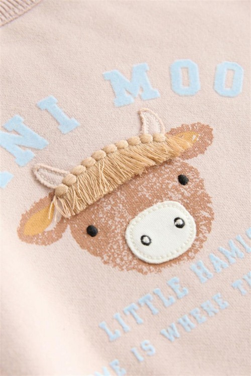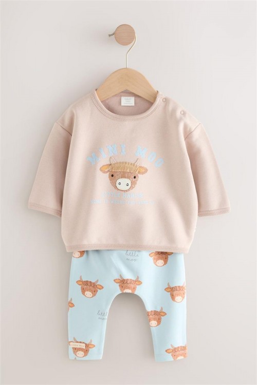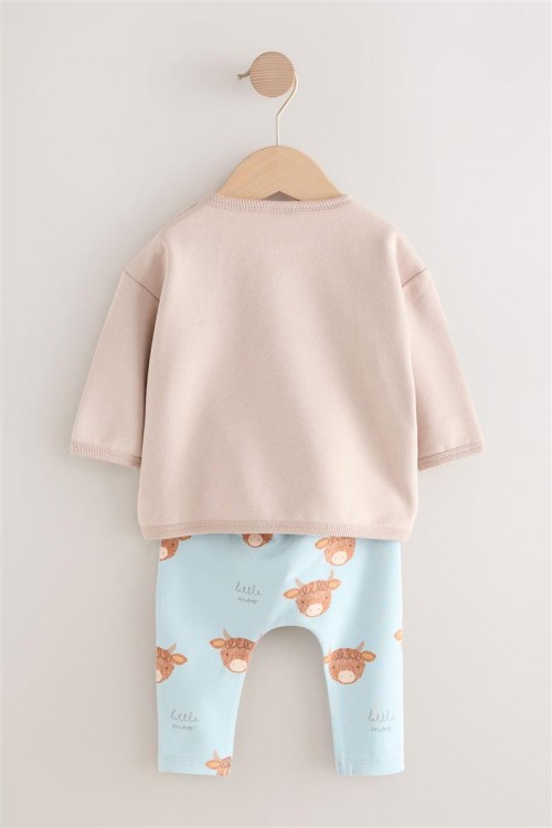 Този комплект от 2 части е идеален, за да поддържа вашето мъниче да изглежда готино и да се чувства удобно, включващ суитшърт с кръгло деколте и закопчаване с копчета, както и чифт клинове с щампа и ластик на талията.