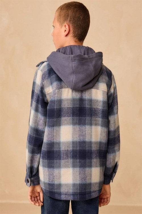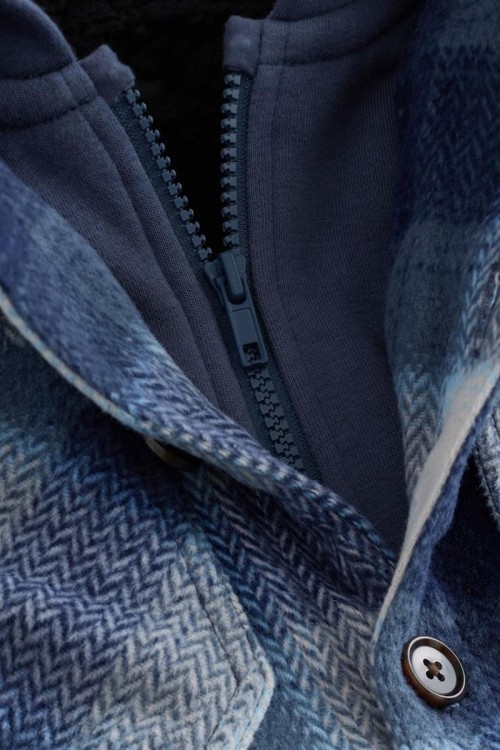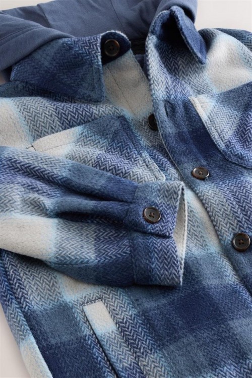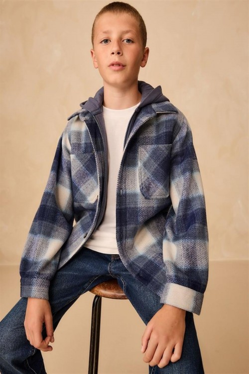 Стилно и практично яке за по-хладните дни. Моделът е с копчета отпред и класически десен каре в синьо и кремаво, с джобове за удобство и акцент. Изработено от мек и топъл плат, якето е идеално за носене върху суитшърт или тениска, осигурявайки едновременно комфорт и модерен стил през сезона.