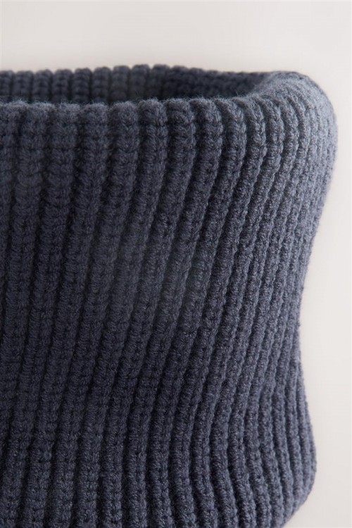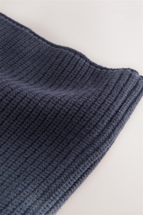Осигурете топлина и комфорт на детето си в студените дни с този тъмносин плетен шал-яка. Изработен от мека и еластична рипсена материя, той приляга плътно и удобно, предпазвайки врата от студа без неудобството на обемен шал. Практичен и стилен, това е идеалният зимен аксесоар за ежедневието.