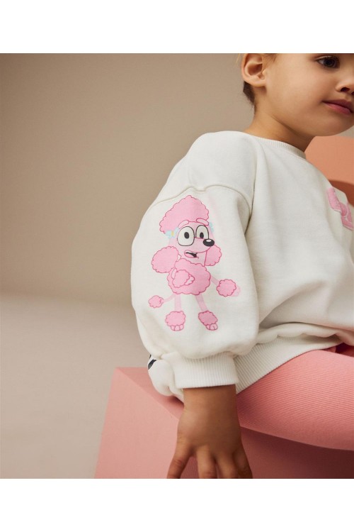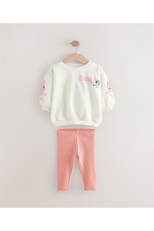 Освежете гардероба им с нашия комплект от суитшърт и клин с любимия герой Блуи. Изработен от памучна смес, този комплект от две части включва суитшърт с дълъг ръкав и рипсен клин със забавна синя графика.
