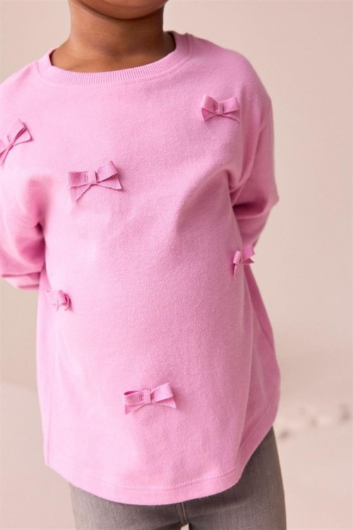 Тази очарователна розова блуза е идеалната комбинация от удобство и сладък стил. Декорирана с нежни панделки отпред, тя придава игрив и модерен акцент на класическата ежедневна дреха. Изработена от мека материя, осигурява комфорт през целия ден и е подходяща за ежедневие, игри или разходки.