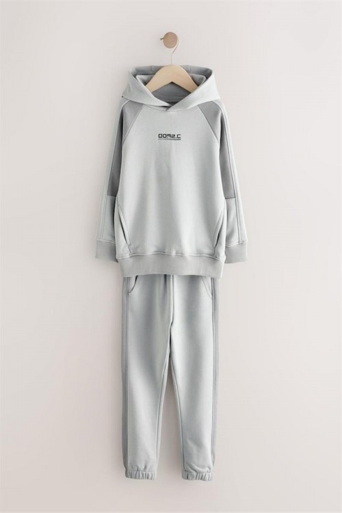 Модерен и удобен комплект от две части, включващ светлосив суитшърт с изчистен дизайн и подходящ панталон. Изработен от мека и издръжлива материя, сетът е идеален за ежедневие, игри или почивка. Свободната кройка и ластичната талия осигуряват максимален комфорт за активните деца.