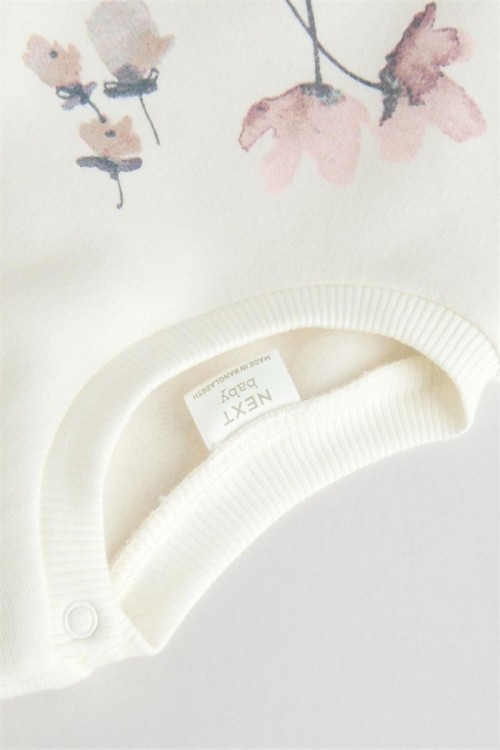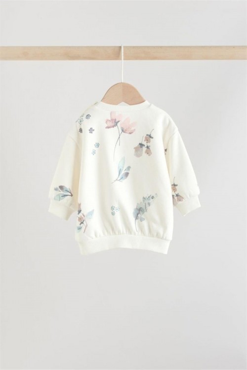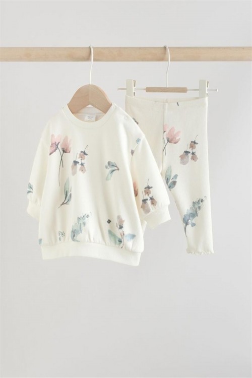 Нежен и удобен комплект от две части, включващ кремав суитшърт и подходящ клин с деликатен флорален десен. Меката памучна материя осигурява комфорт през целия ден, а еластичният клин позволява свобода на движенията по време на игра. Идеален за ежедневието и за носене у дома.