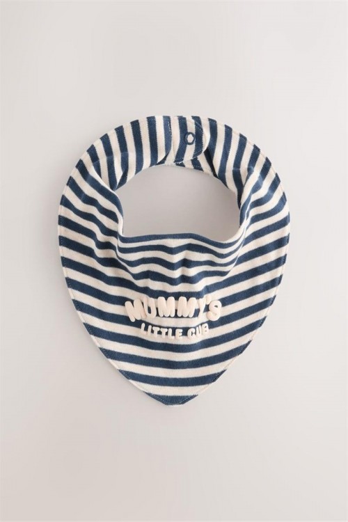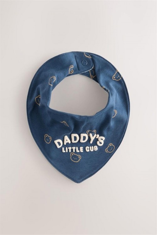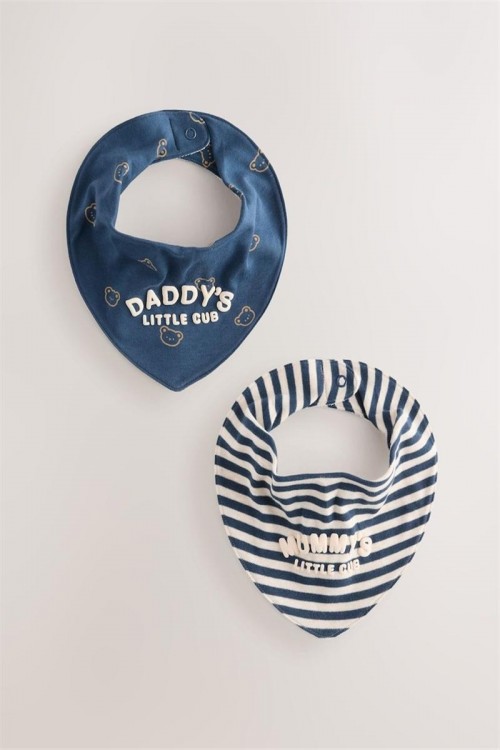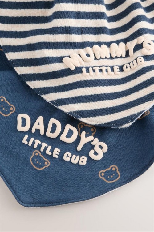 Запазете вашето мъниче чисто и стилно с този комплект от два меки лигавника тип бандана. Единият е в тъмносин цвят с надпис “Daddy’s Little Cub”, а другият – с класически сини и бели райета. Изработени от мек и попиващ памук, идеални са за хранене или периода на никнене на зъбки. Закопчават се лесно отзад с тик-так копчета за удобство и комфорт.