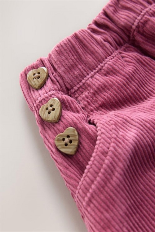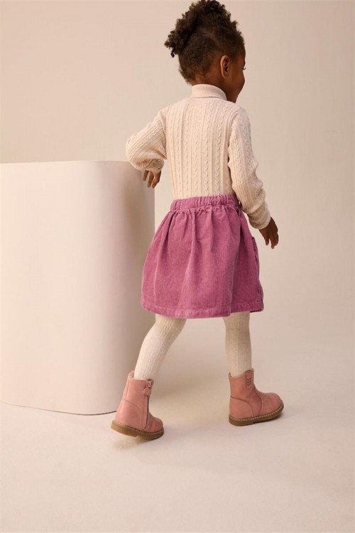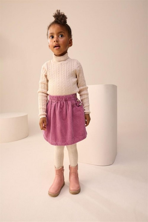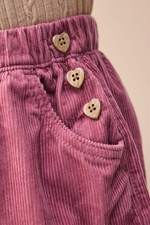 Очарователна розова пола от кадифе, която съчетава стил и удобство за вашето дете. Изработена от мек текстуриран плат, тя е украсена с декоративни копчета и джобове за допълнителен чар. Еластичната талия осигурява удобно прилягане, което я прави подходяща както за ежедневието, така и за специални поводи. Комбинирайте я с плътни чорапогащи и топъл пуловер за сладка есенно-зимна визия.