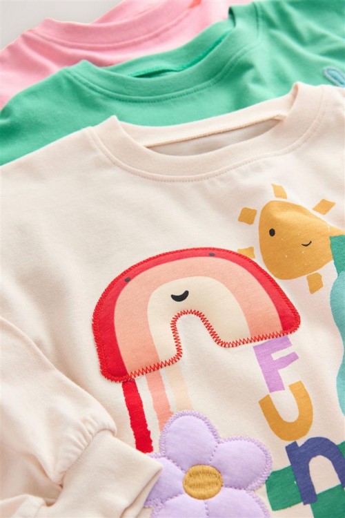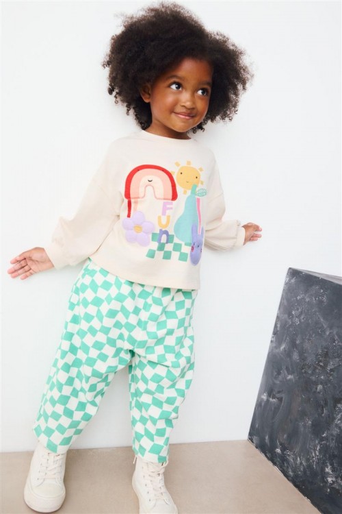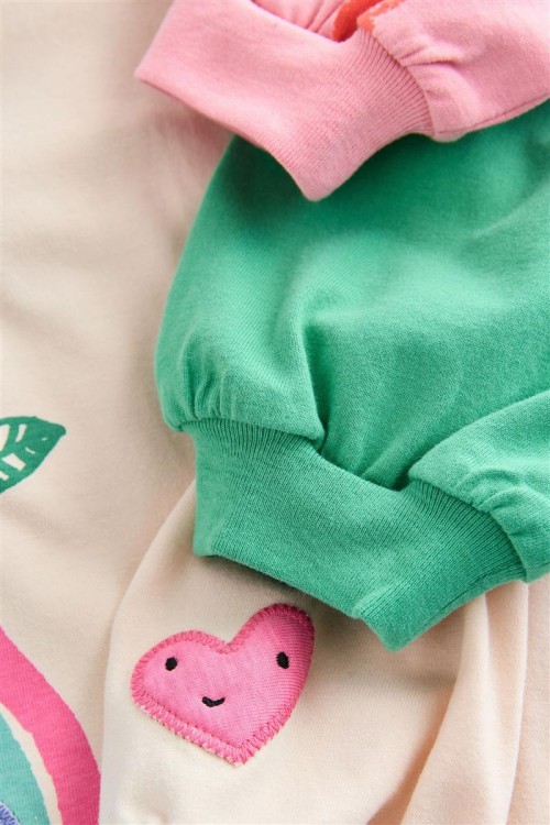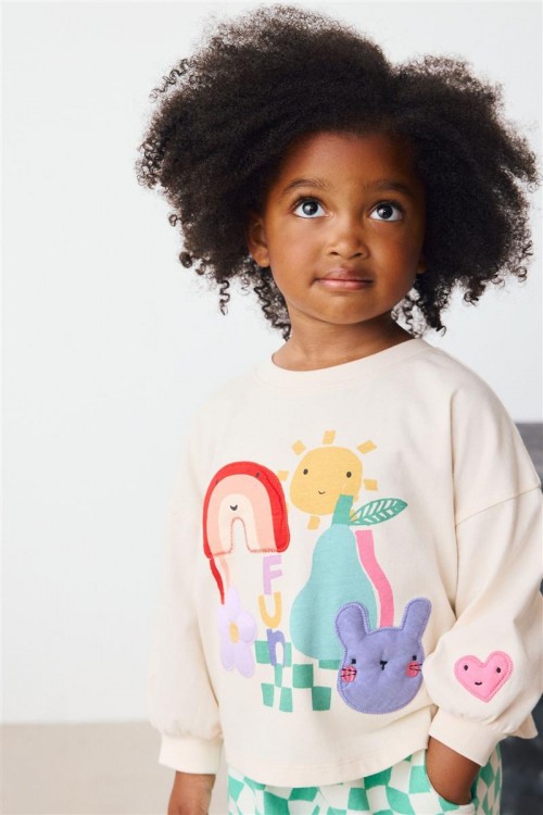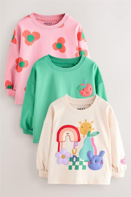 Добавете настроение в гардероба на вашето дете с този очарователен комплект от 3 суитшърта. Всеки модел е с различен забавен дизайн – весели цветя, плодове и сладки животни с дъги. Изработени от мек памучен плат, те осигуряват комфорт и топлина през целия ден – идеални за игра или ежедневни разходки. Свободната кройка и ръкавите с ластик гарантират удобно прилягане и свобода на движение.