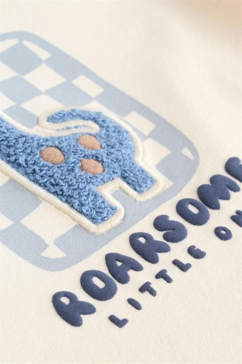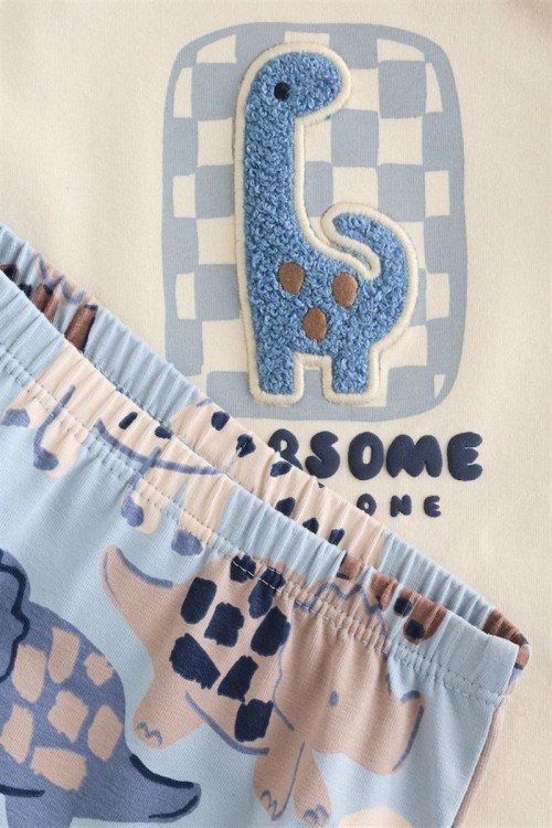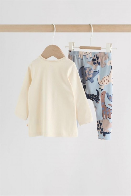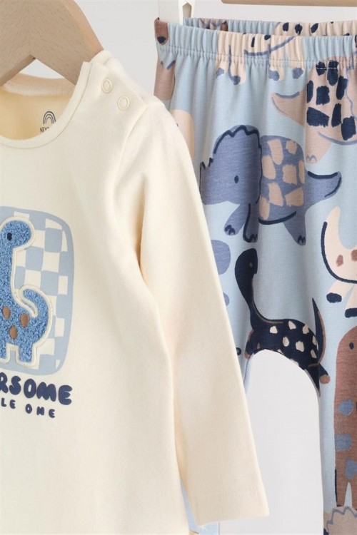 Игрив и уютен, този комплект от две части е идеален за ежедневно носене. Супер мекото горнище е със сладък принт, а панталонът има ластик на талията за удобно прилягане. Това е универсален и забавен комплект за вашето мъниче.