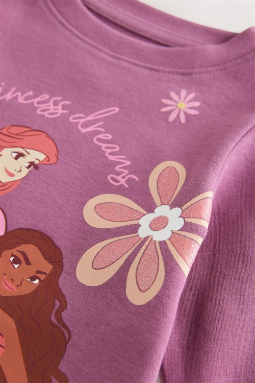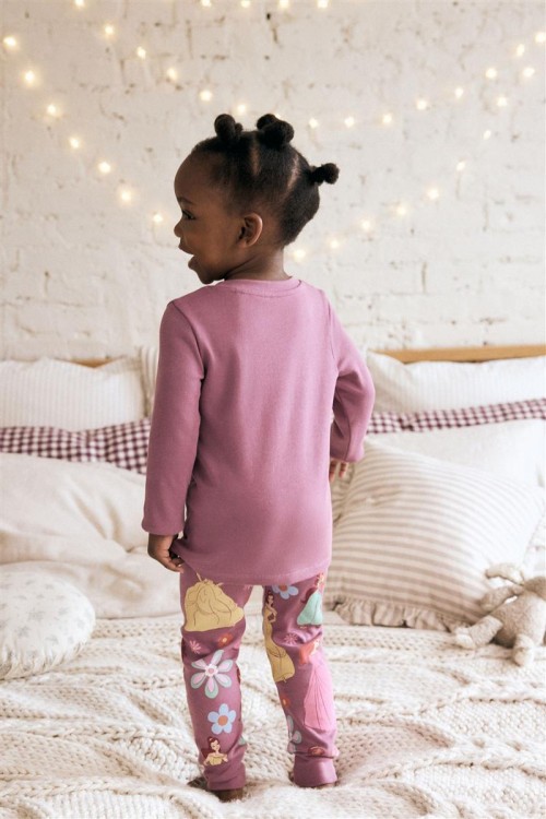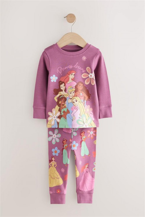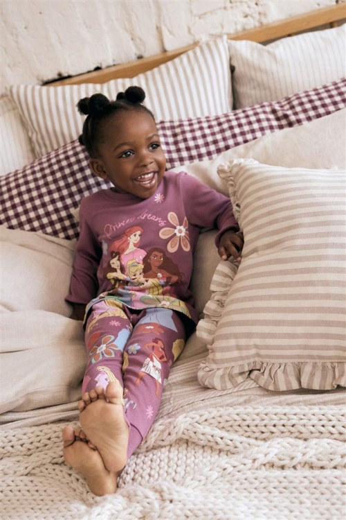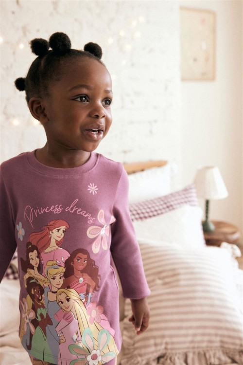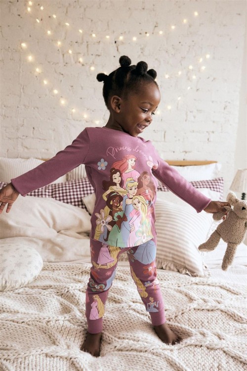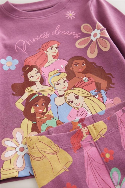 Мечтай смело с тази очарователна пижама Disney Принцеси, украсена с любими героини като Пепеляшка, Бел, Ариел и други. Горнището с дълъг ръкав и долнището в нежен розово-лилав нюанс са декорирани с красиви щампи на принцеси – идеални за вълшебни сънища. Изработена от мек и дишащ памук, тази удобна пижама осигурява спокоен сън и добавя магия към вечерните ритуали на вашето дете.