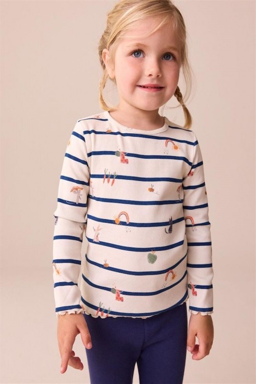 Добавете малко забавление към ежедневните им дрехи с тази рипсена блуза с дълъг ръкав, предлагана в селекция от ярки цветове и щампи, върху основа с високо съдържание на памук и добавена еластичност.