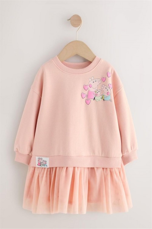 Очарователна рокля с принт на Peppa Pig отзад и нежна тюлена пола в съчетан цвят. Перфектен избор за малки почитателки на Peppa Pig, които обичат удобството, съчетано с игрив стил — подходящ за ежедневие и весели моменти.