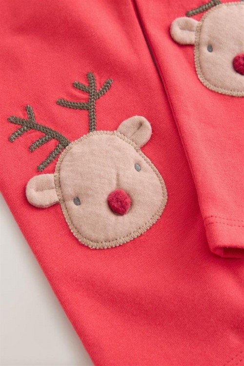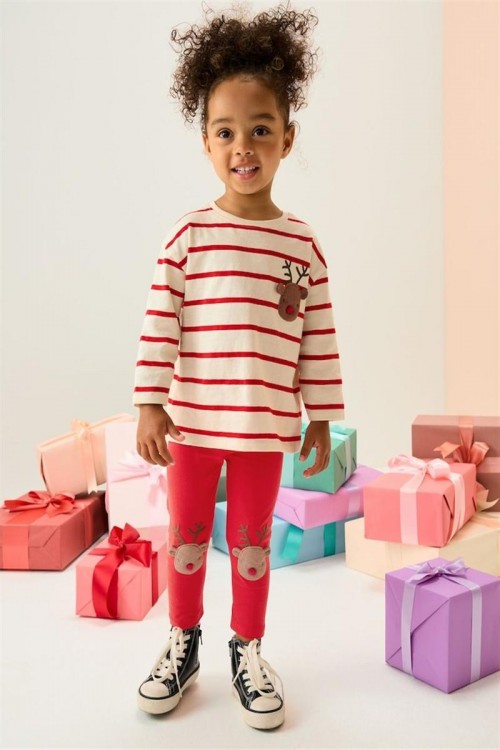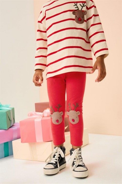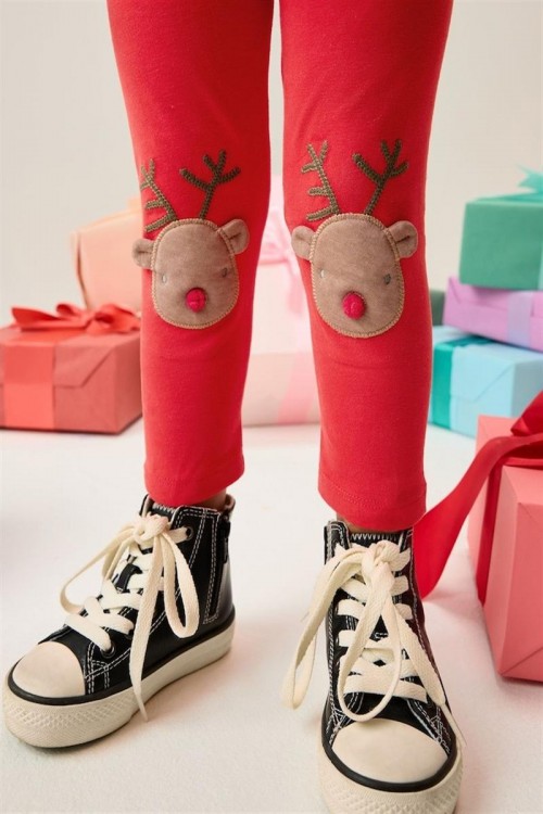 Подгответе се за празничния сезон с тези червени коледни клинове. Те са с очарователна апликация с елени на всяко коляно, което е идеално за добавяне на забавен и уютен щрих към зимните ви тоалети.