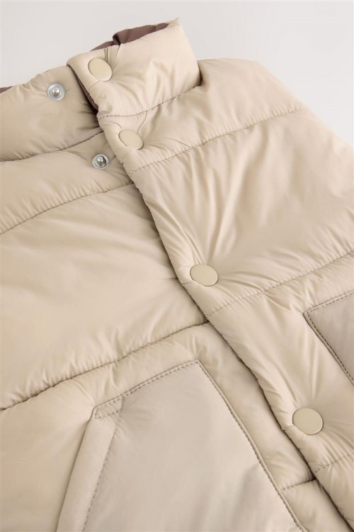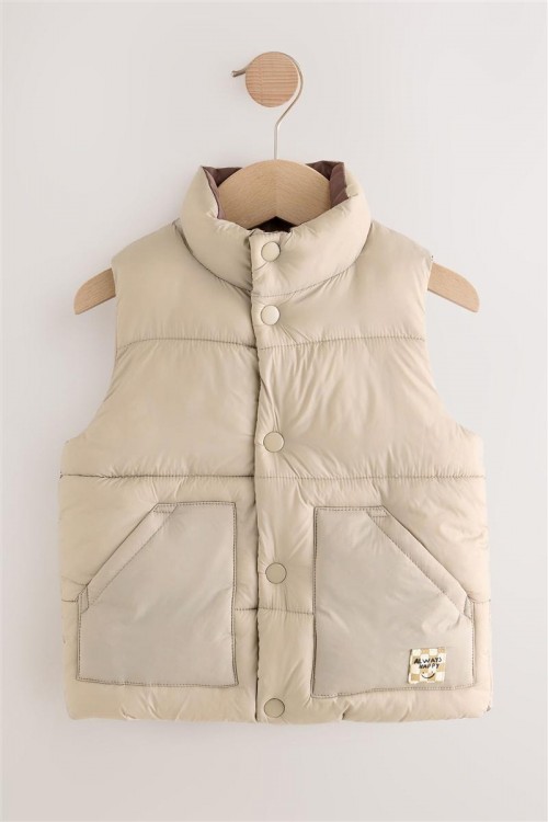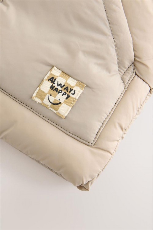 Изработен от лек найлон и подплатен за допълнителна топлина, очарователният елек разполага с лесни за употреба копчета отпред и странични джобове, за да поддържа ръцете му топли.