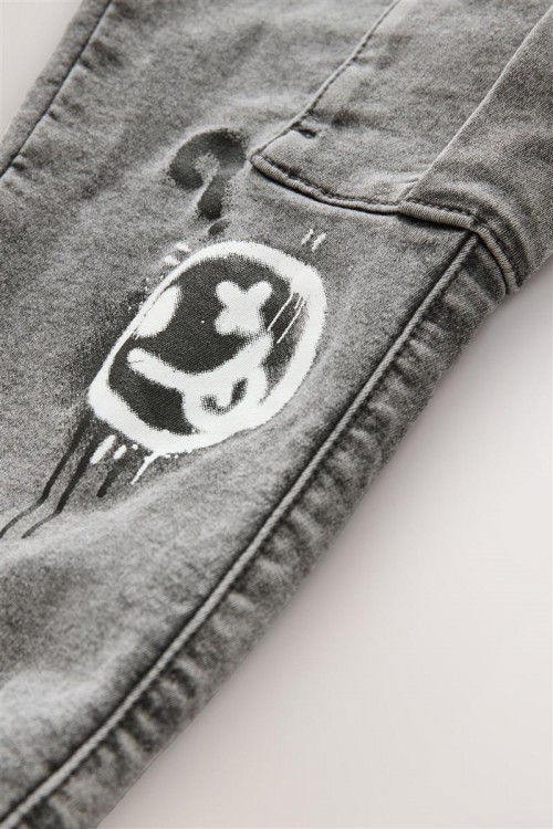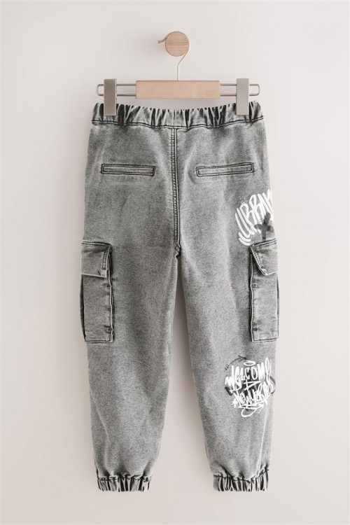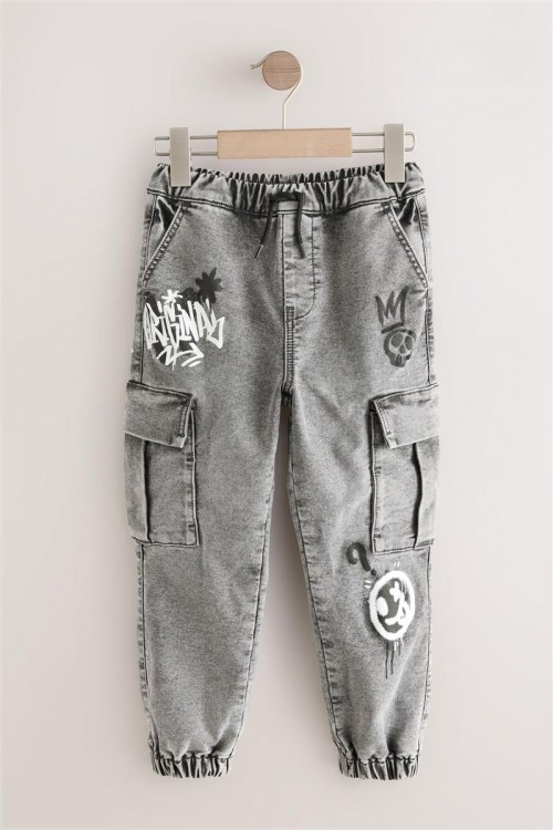 Модерни сиви карго дънки със стилни графити щампи. С практични странични джобове и ластични крачоли, те съчетават удобство и модерен вид. Изработени от мека и устойчива деним материя, дънките са идеални за ежедневни игри и разходки. Перфектен избор за деца, които обичат удобството и градския стил.
