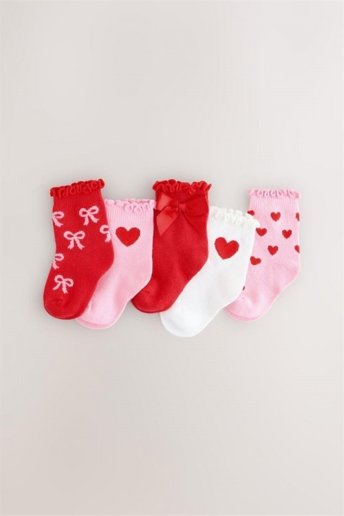 Запасете се с бебешки чорапи с очарователни дизайни с този комплект от 5 чифта памучни чорапи до глезена. Всеки чифт чорапи има къдрички, с детайли във формата на сърце, панделка и 3D панделка, които са супер меки на допир, без вредни оцветители или химикали.