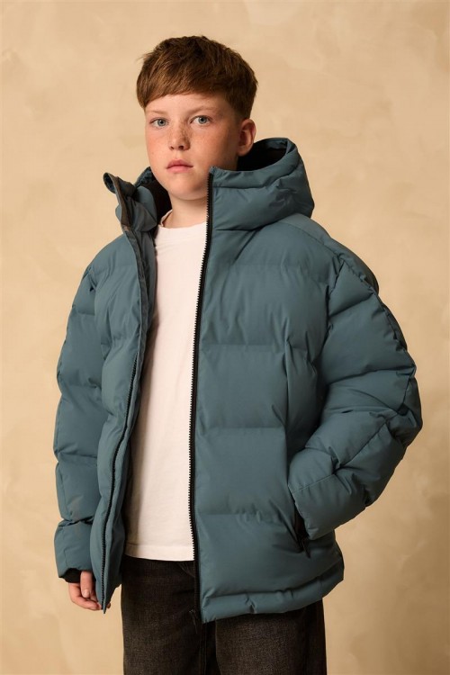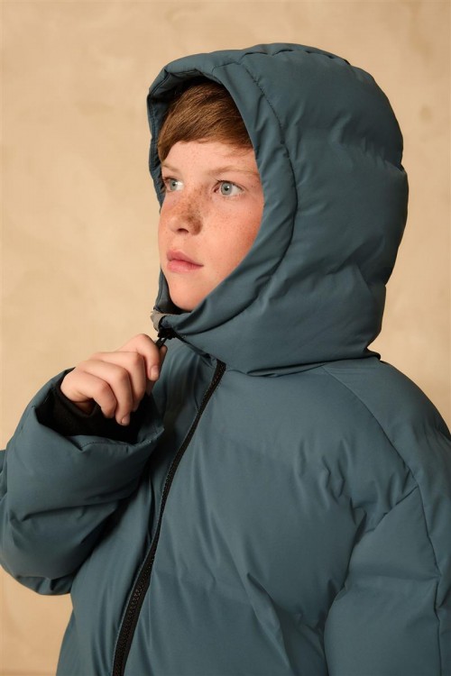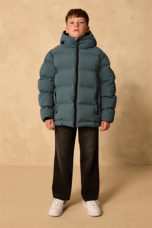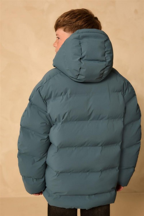 Модерно и топло подплатено яке в тюркоазен нюанс, подходящо за студените дни. Има капитониран дизайн с висока яка и качулка за допълнителна защита. Закопчава се с цип отпред и разполага със странични джобове за удобство. Материята е с гладък матов финиш, който придава стилен и изчистен вид — идеално за ежедневна зимна визия.