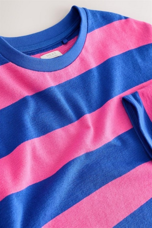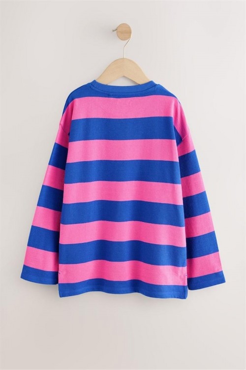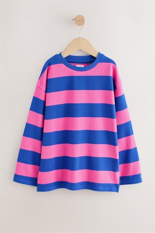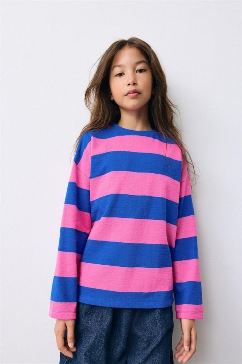 Пъстра блуза с дълъг ръкав и широки хоризонтални райета в розово и кралско синьо – идеална за свеж и спортен стил. Изработена от мек памук, тя осигурява комфорт и проветривост през целия ден. С удобна кройка и обло деколте, лесно се комбинира с дънки, клин или пола – подходяща както за разходка, така и за игри.