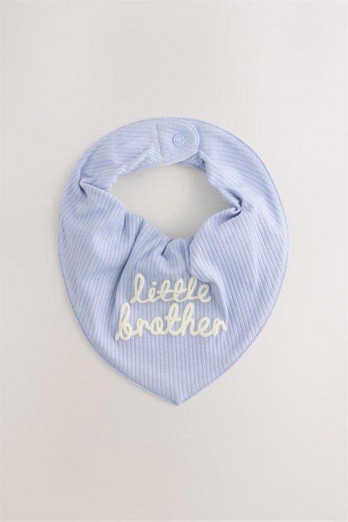 Очарователен и удобен комплект от два меки лигавника тип бандана в сини нюанси. Единият е с надпис „Little Brother“ върху релефен рипсен плат, а другият е с модерен шахматен десен. Закопчават се лесно с тик-так копче и са идеални за поддържане на чистота и стил през целия ден.