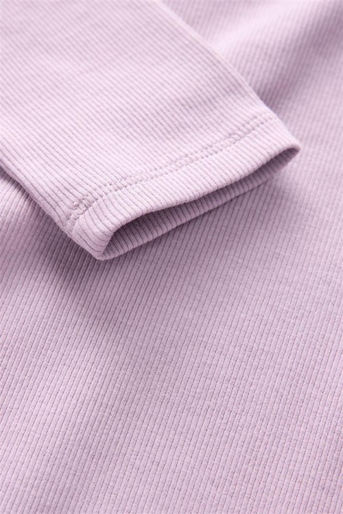 Мека и семпла блуза с дълъг ръкав в нежен люляков нюанс. Има изчистена кройка и леко разширено деколте, подходяща за носене под суитшърт или в комбинация с дънки и поли. Изработена от дишащ памук, който е нежен към кожата – идеална за училище или ежедневието.
