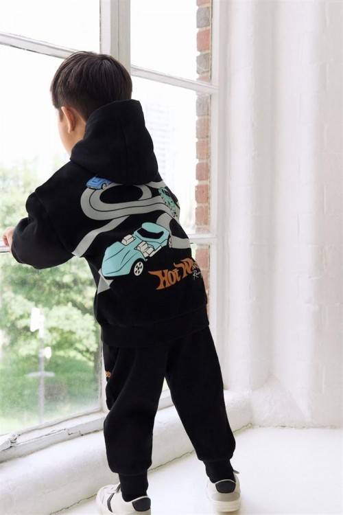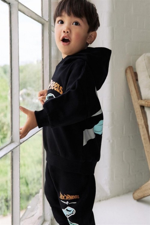 Перфектен за следващото им приключение, този комплект от суитшърт с качулка и спортни панталони Hot Wheels е удобен и готин избор. Меката материя и свободната кройка осигуряват максимален комфорт за игра през целия ден, а ярките гел щампи отпред и отзад добавят забавен и стилен щрих. Този комплект от две части е лесен начин да ги поддържате да изглеждат и да се чувстват страхотно.