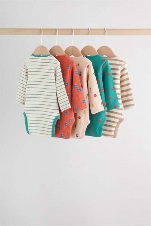 Незаменим елемент от гардероба им, този комплект от 5 бр. ярки бебешки бодита е практичен и цветен избор. Изработени от супер мек памук, тези бодита са нежни към кожата и закопчаване с копчета отдолу за лесно обличане.