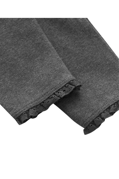 Класическите ни клинове в сиво, завършени с дантела, са задължителен елемент от гардероба. Изработени от памучна смес с добавена еластичност, тези клинове са удобни за носене. Идеални за ежедневната визия на детето ви. Може да се пере в пералня.