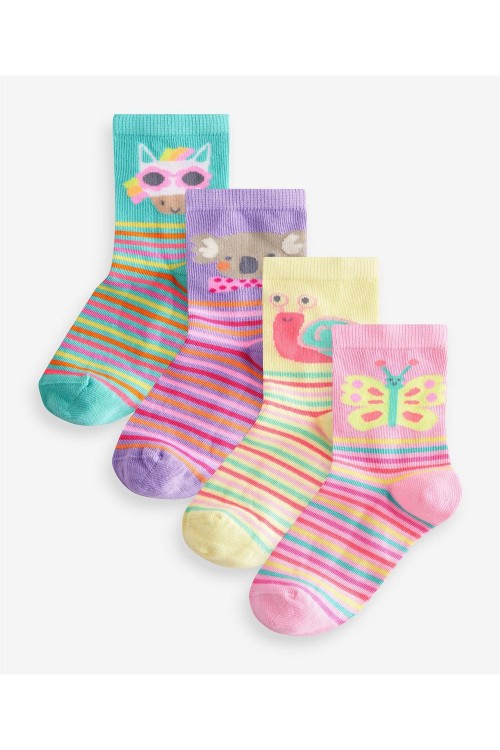 Запасете се с най-важните неща за ежедневието на вашите момиченца с този комплект от 4 чифта шарени чорапи до глезена от удобна памучна материя.
