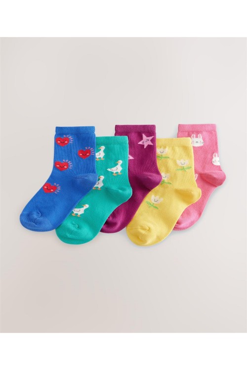 Запасете се с най-важните неща за ежедневието на вашите момиченца с този комплект от 5 чифта чорапи в ярки цветове до глезена от удобна памучна материя.