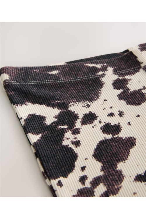 Този рипсен клин има стилна разкроена форма, изработен от удобна, разтеглива в 4 посоки материя с високо съдържание на памук, завършени с еластична талия.