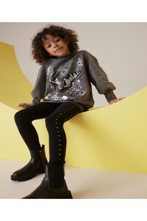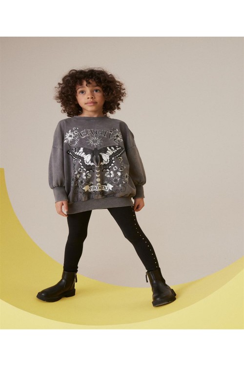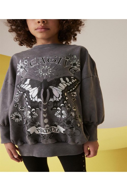 Добавете стил и комфорт към гардероба на вашето дете с този модерен, широк суитшърт. Дизайнът включва впечатляваща графика с пеперуда и флорални елементи, както и надпис „Creative Harmony.“ Изработен от мек, висококачествен плат за удобство през целия ден. Идеално комбиниран с черен клин.