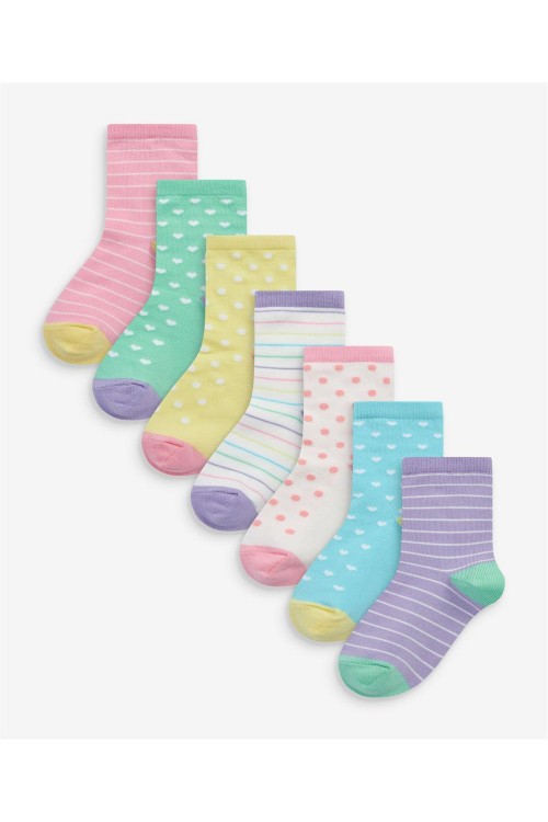 Запасете се с най-важните неща за ежедневието на вашите момиченца с този комплект от 7 чифта шарени чорапи до глезена от удобна памучна материя.