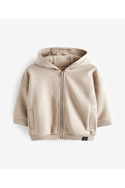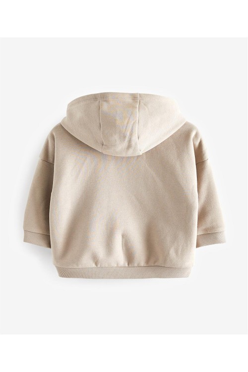 Вашият малък приятел ще хареса този суитшърт от памучен трикотаж, с цип по цялата дължина, вталена качулка и спуснати рамене, завършен с двойни странични джобове. Може да се пере в пералня